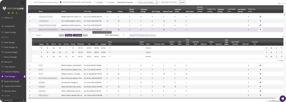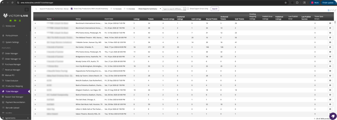 Manage the full lifecycle of your live event ticket inventory from a single, user-friendly dashboard. Victory Live One optimizes every step of ticketing inventory management—from acquisition to fulfillment—with automation, real-time insights, and seamless integration across multiple marketplaces.